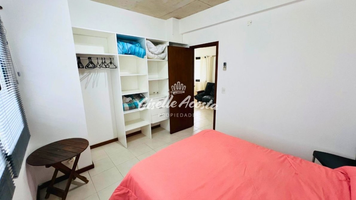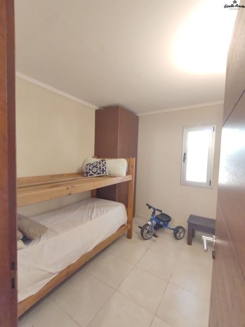 Dormitorio con cama matrimonial, baño completo, y segundo dormitorio con dos camas individuales.
