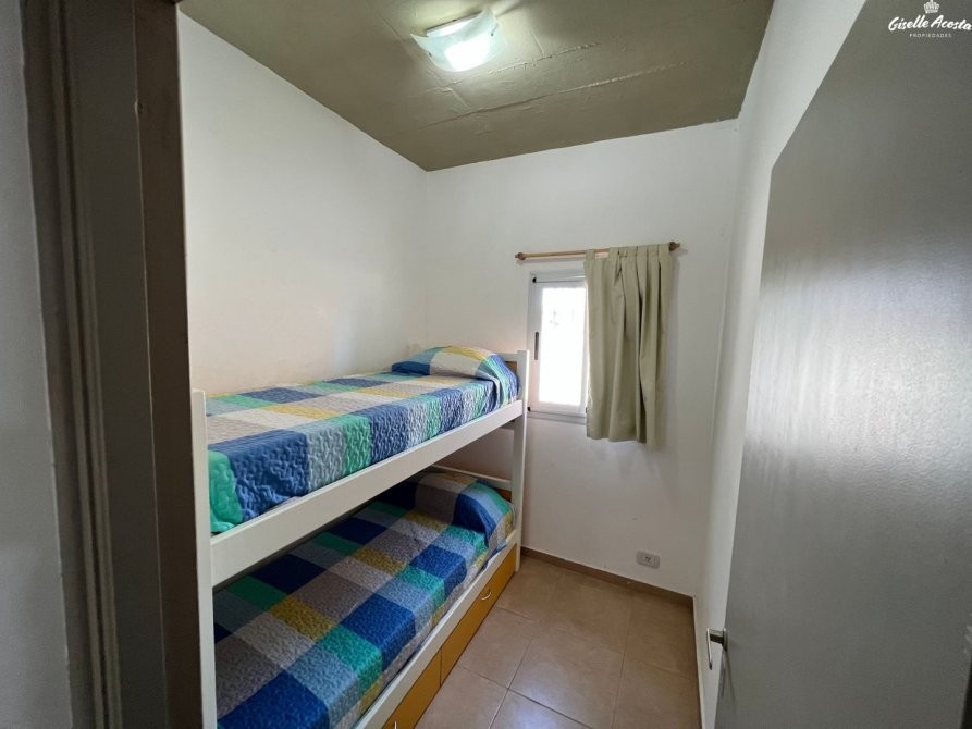 De dos dormitorios, uno doble y otro estándar con 1 cama cucheta, living, comedor y cocina integrados, baño completo y amplio patio con parrilla.