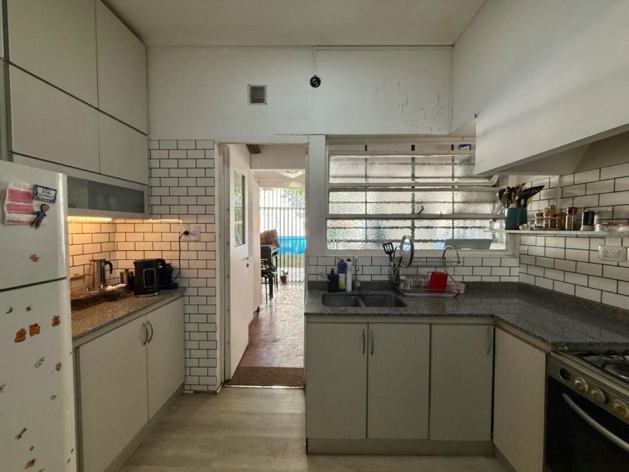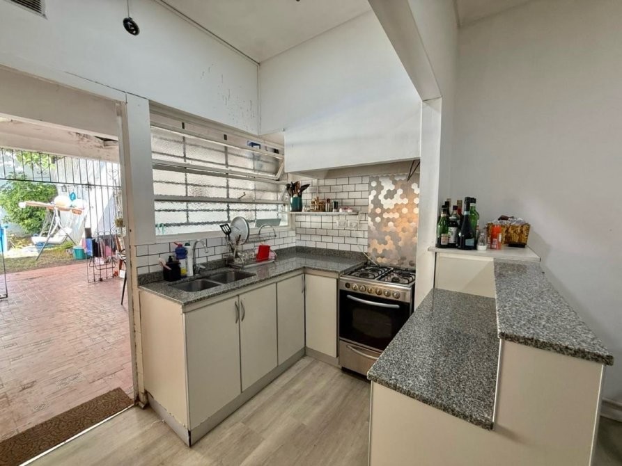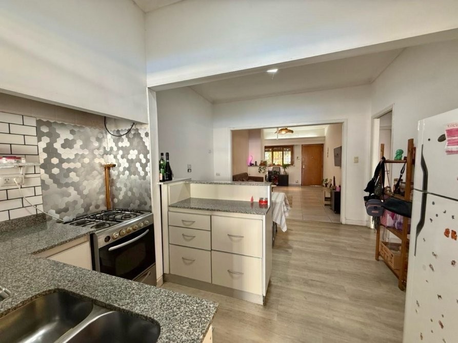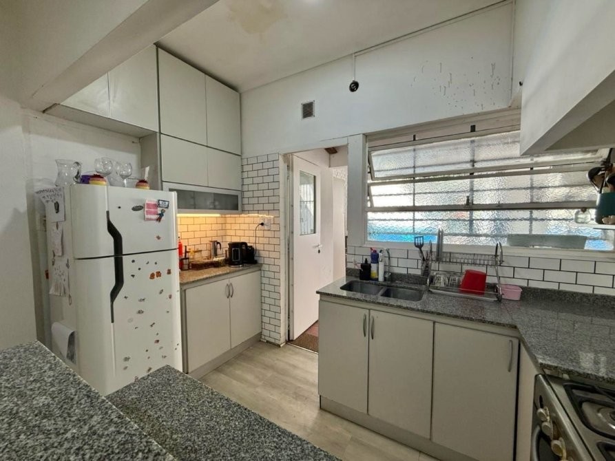 - Cocina (reciclada) semi integrada al living con amoblamiento completo bajo mesada, barra desayunadora y vista al parque.
