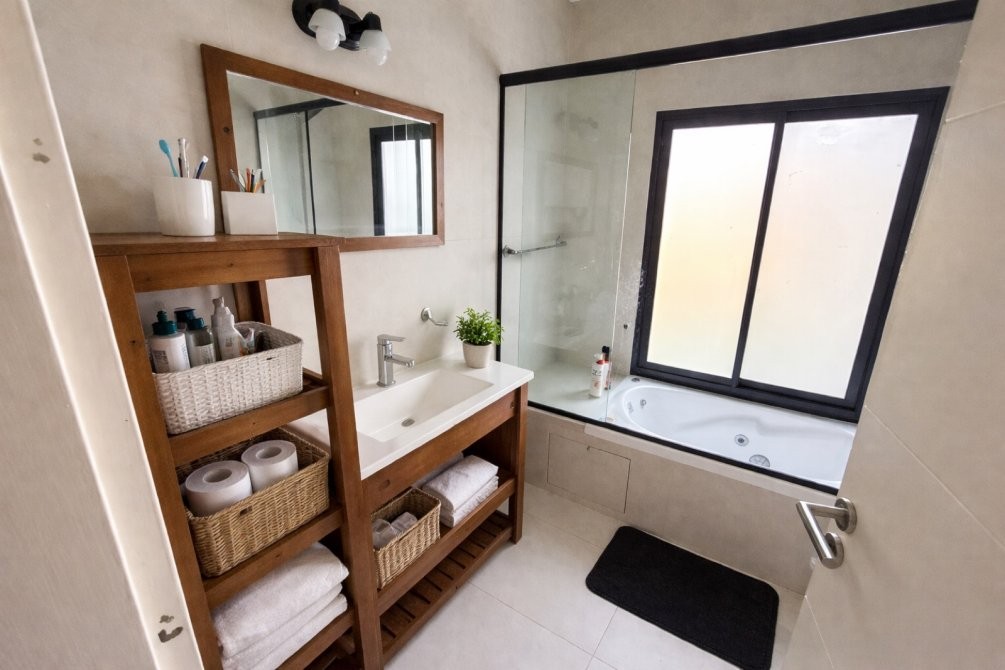 En el exterior, un jardín con riego automático, una galería con parrilla, y un deck rodeado de un hermoso paisaje te invitan a disfrutar del aire libre. La pileta y el solarium son perfectos para los días soleados, mientras que el quincho es el lugar ideal para encuentros con amigos.