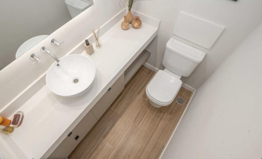 La unidad cuenta con un toilette de recepción con vanitory de primera línea, ideal para visitas.