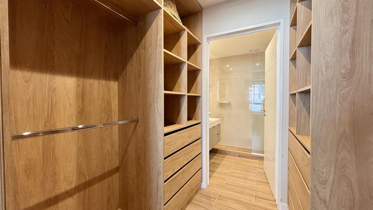 El dormitorio principal en suite dispone de un cómodo vestidor y baño completo, logrando una zona de descanso íntima y confortable.