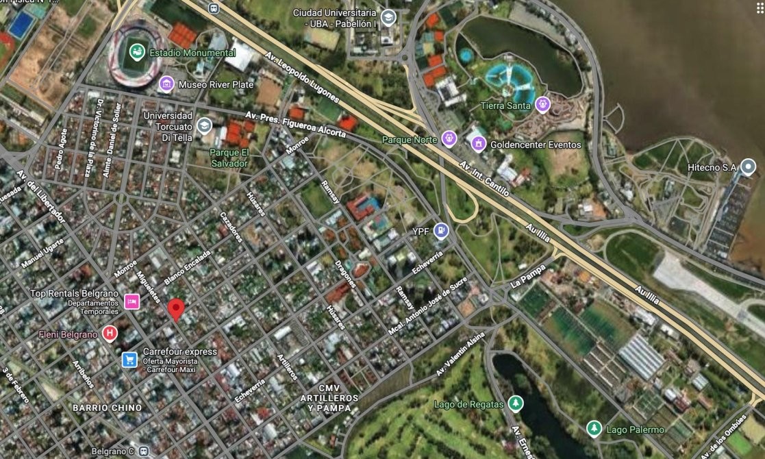 Ubicado a tan solo una cuadra de Av. del Libertador, cercano a la Universidad Torcuato Di Tella y Ciudad Universitaria, Estadio Monumental, (River) , barrio chino, acceso a Av. Lugones, tec, en el elegante entorno de Belgrano Chico, este moderno y amplio departamento de 2 ambientes combina diseño, confort y materiales de alta calidad.