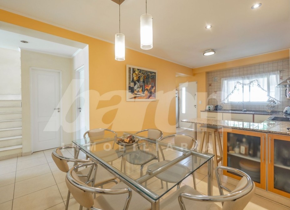 Al frente cuenta con jardín y portón automatizado para el ingreso vehicular, brindando comodidad y seguridad. En planta baja, al ingresar, encontramos un amplio y luminoso living comedor con pisos de porcelanato , toilette de recepción y una habitacion de servicio que podria utilizarse tambien como escritorio u oficina  . A continuación se dispone la cocina comedor diario, equipada con muebles bajo y sobre mesada de gran capacidad de guardado, mesada de granito y ventana que favorece la ventilación natural. Desde este sector se accede a un lavadero independiente con preinstalación para lavarropas y salida a un hermoso patio con espacio parquizado, pérgola semicubierta con parrilla ideal para reuniones y un cuarto de guardado.
