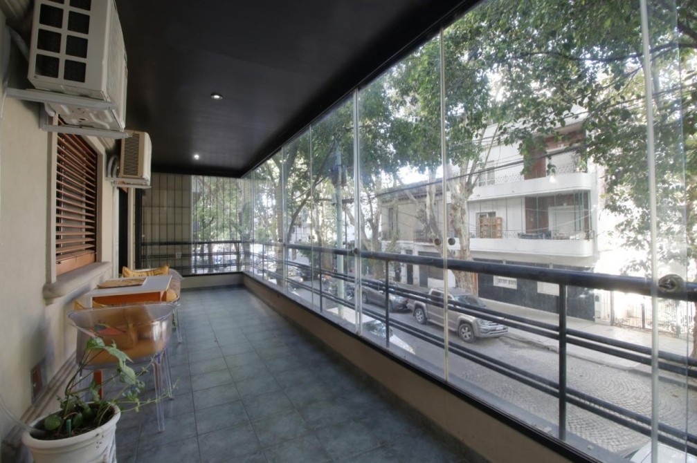 El edificio tiene solo 10 años de antigüedad y cuenta con un ascensor directo a palier privado. La propiedad incluye una cochera cubierta y una baulera, proporcionando espacio de almacenamiento adicional, mientras que las comodidades adicionales incluyen aire acondicionado individual, parrilla, y la posibilidad de tener mascotas, lo que lo hace ideal para familias.