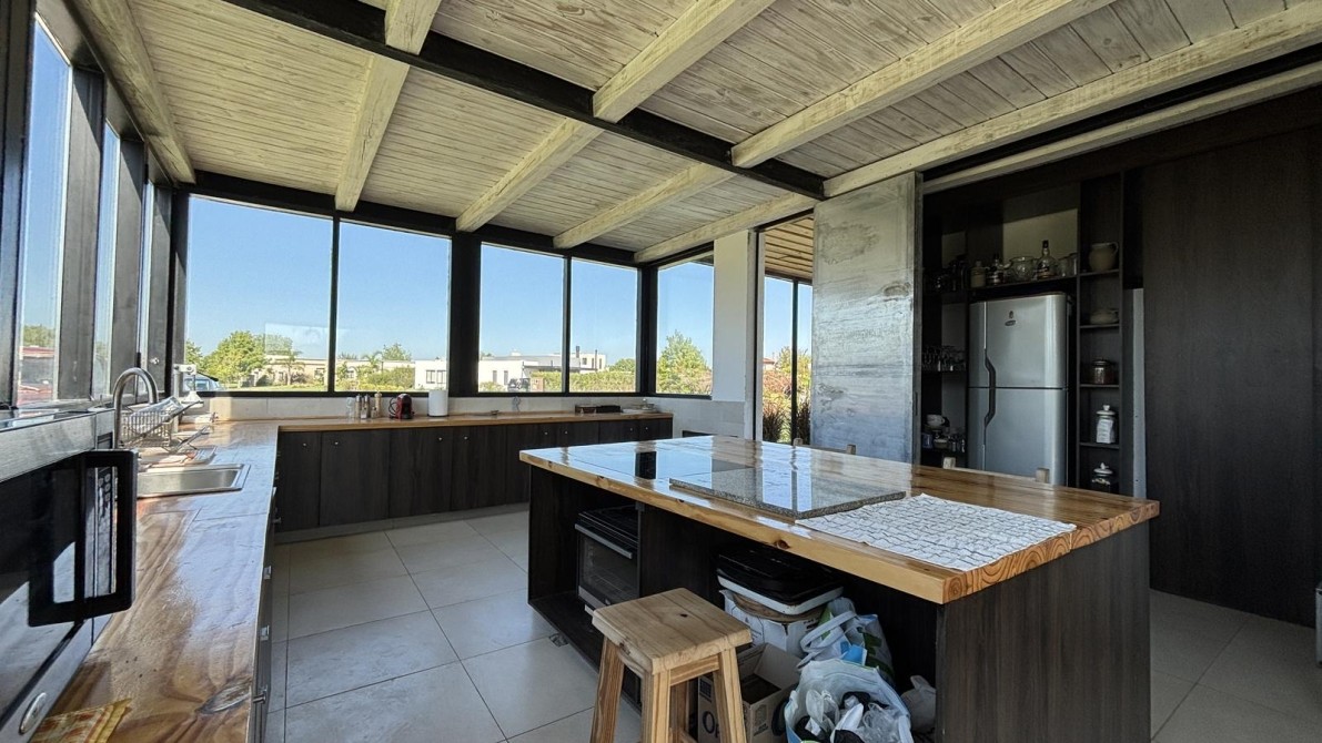 Hermosa casa de 1 planta con una arquitectura moderna, 70% vidriada conectando directamente con el entorno y espacios abiertos.