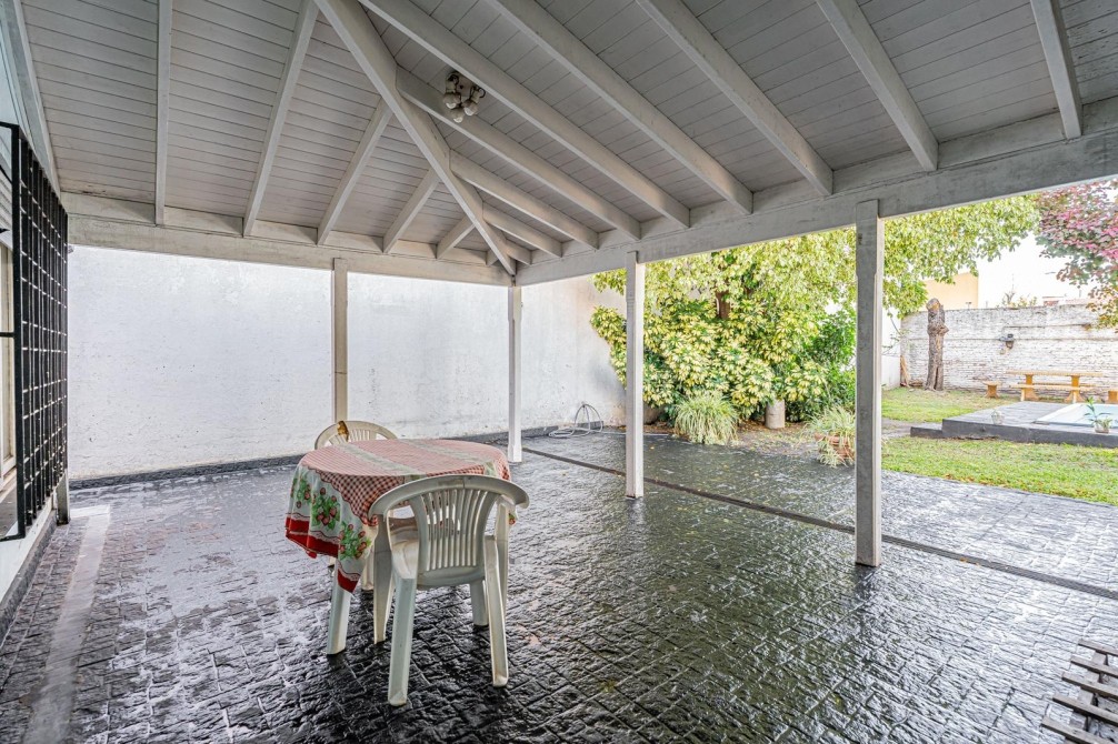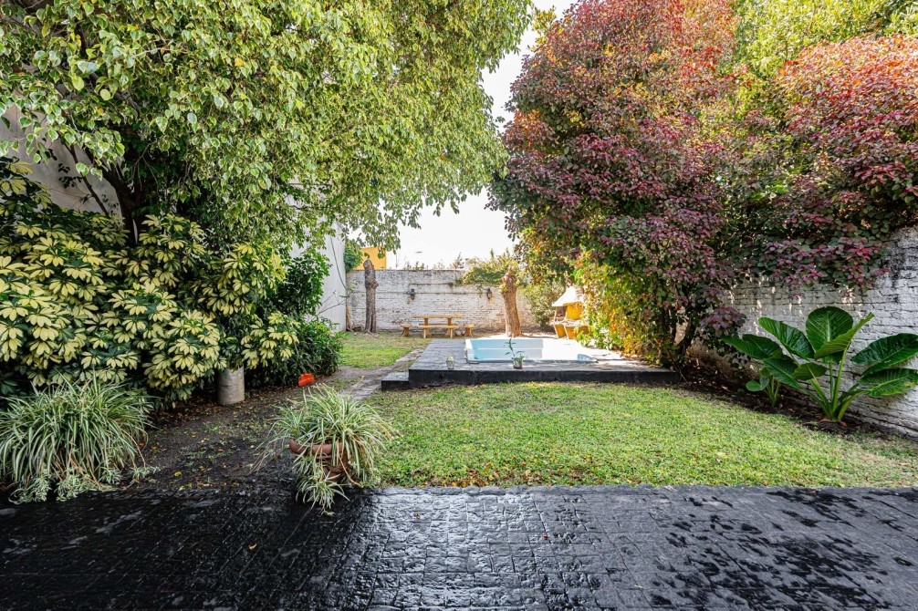 En la Planta Baja: cuenta con un amplio living, un dormitorio y un escritorio (o posibilidad de segundo dormitorio en este nivel). Dispone de baño completo, cocina y comedor diario con salida directa a la galería que conecta con el exterior: un gran fondo libre parquizado con pileta, ideal para disfrutar en familia. Incluye lavadero independiente y un práctico pasillo lateral con ingreso directo hacia el fondo.