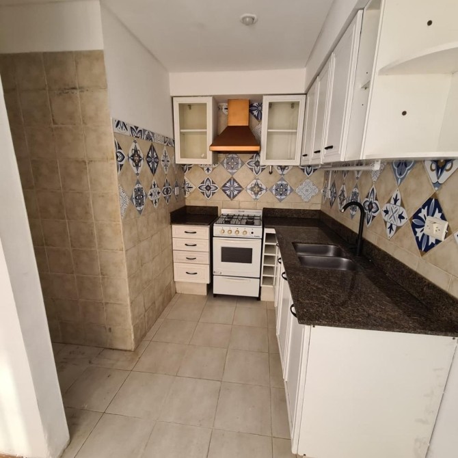 Cocina integrada: 2.20 x 1.65 m, con alacenas y bajo mesada, piso cerámico.