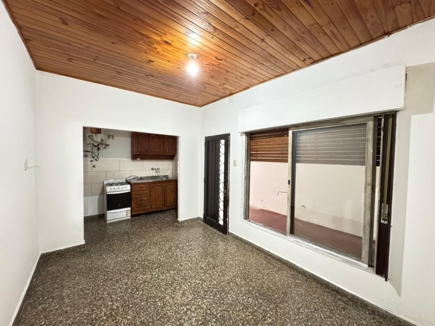 Con ingreso por pasillo al fondo que brinda mayor tranquilidad y privacidad, la unidad cuenta con un patio propio que dispone de lavadero y techo rebatible. Desde allí se accede al living comedor con cocina integrada, equipada con muebles bajo mesada y alacenas de madera que aportan calidez y practicidad al espacio.