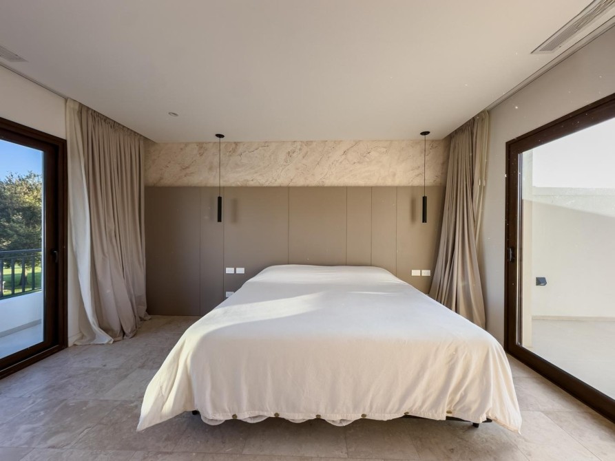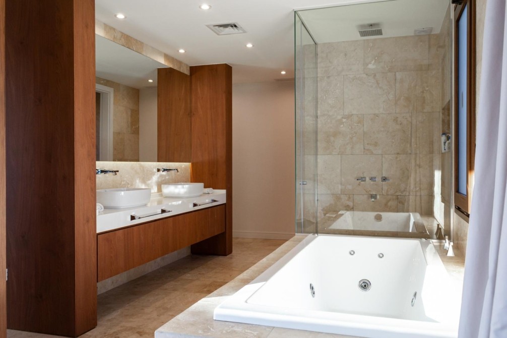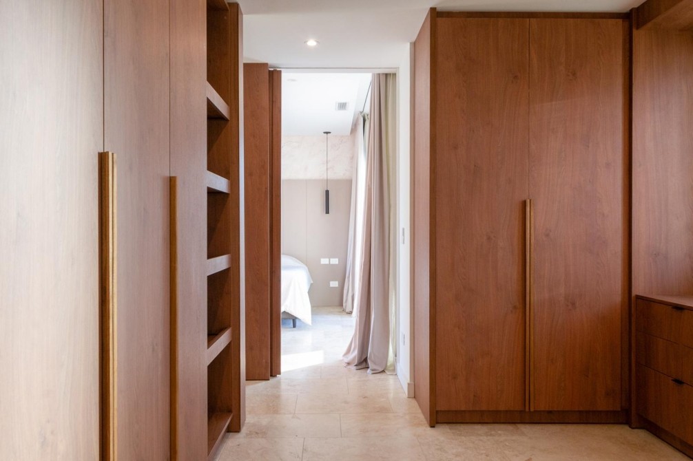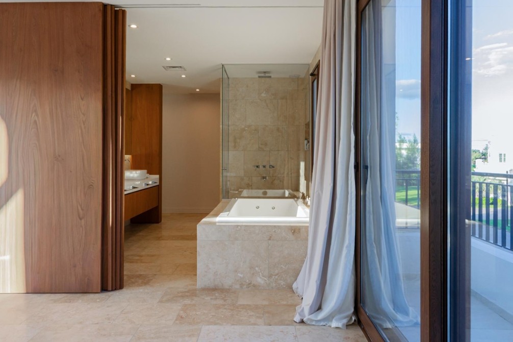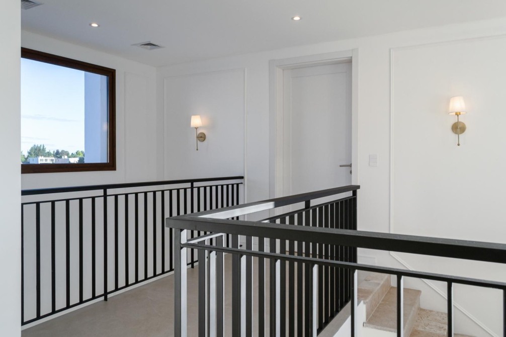 En planta alta se desarrollan dos cómodas suites con baño completo y vestidor, y una destacada master suite de generosas dimensiones con baño compartimentado, bañera, jacuzzi, vestidor y elegantes pisos de mármol travertino.