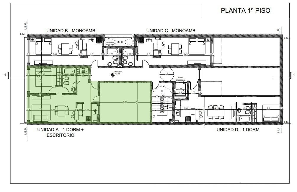 Se ingresa a un amplio y luminoso living/comedor diario, integrado a la cocina por una barra tipo americana, un espacio de oficin, un dormitorio con placard empotrado y baño completo.