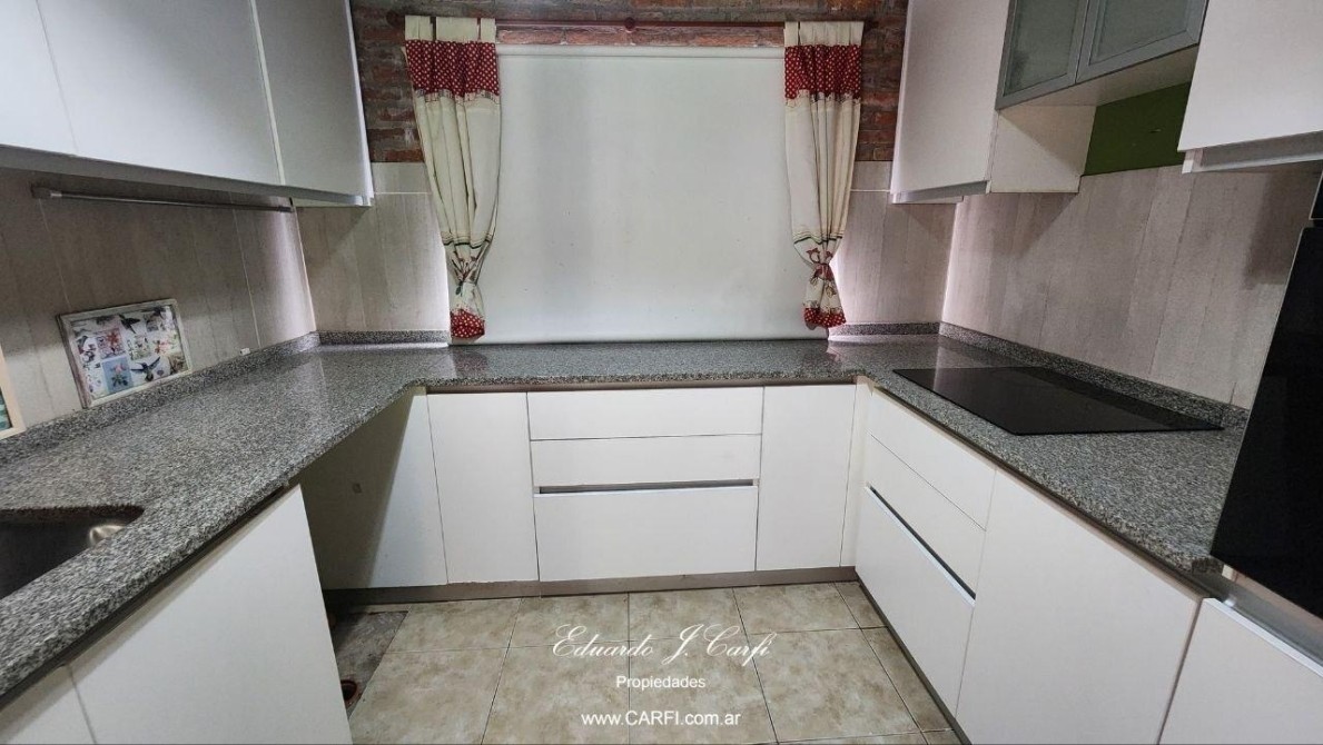 La residencia dispone de 3 dormitorios, uno de ellos en suite con amplio vestidor, y 2 baños completos, proporcionando comodidad para toda la familia. La cocina está diseñada para ser funcional y luminosa, conectada con un lavadero independiente. Los espacios comunes incluyen un acogedor living, un comedor y una galería que ofrece un ambiente perfecto para reuniones sociales.