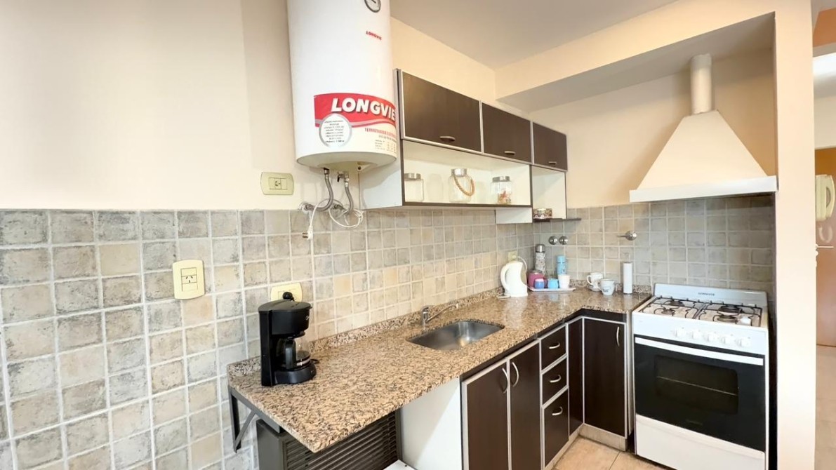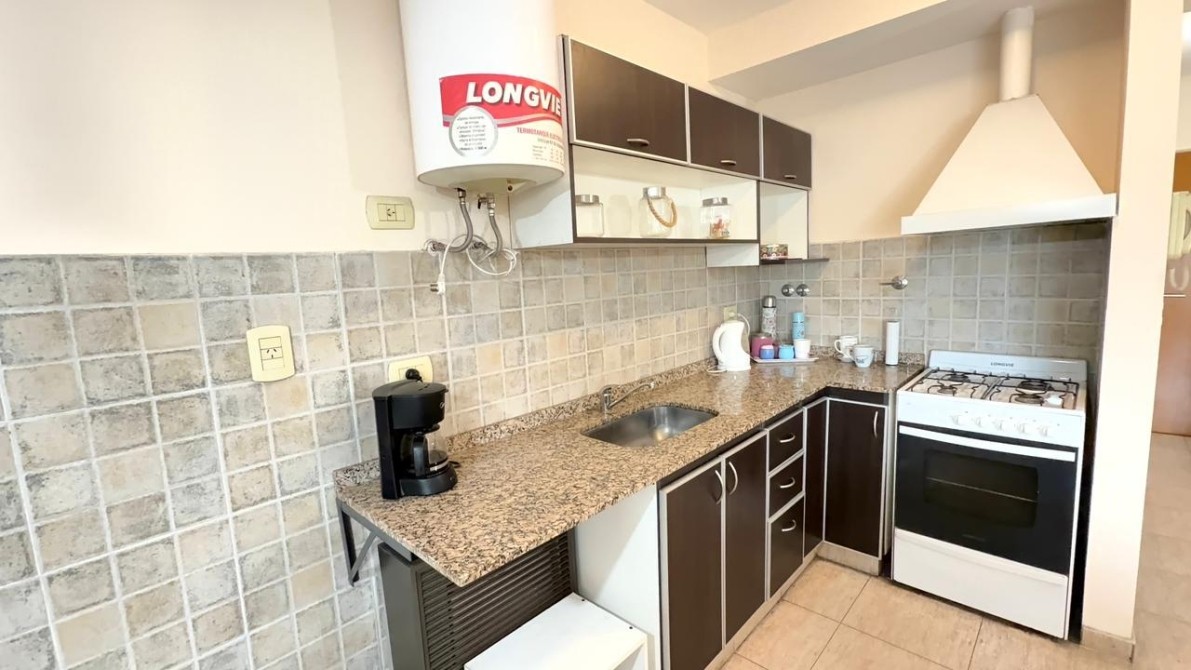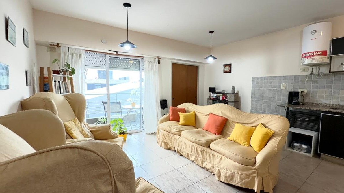 La cocina es a gas, con mesada en “L” y termotanque eléctrico. Posee baño completo con bañera y accesorios, placard empotrado y un balcón amplio que aporta gran luminosidad y ventilación.