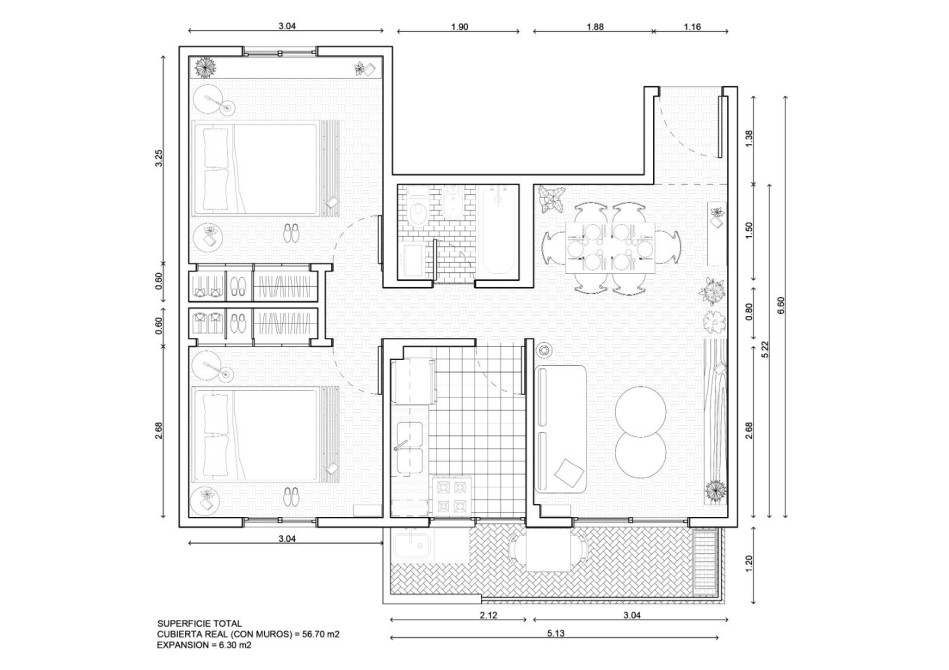 Superficie total 60m2