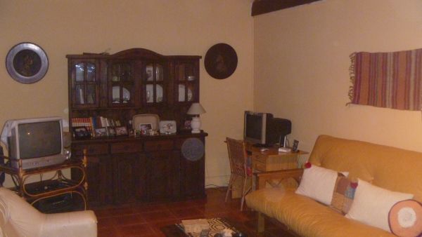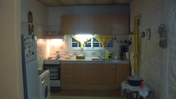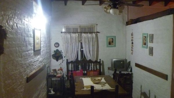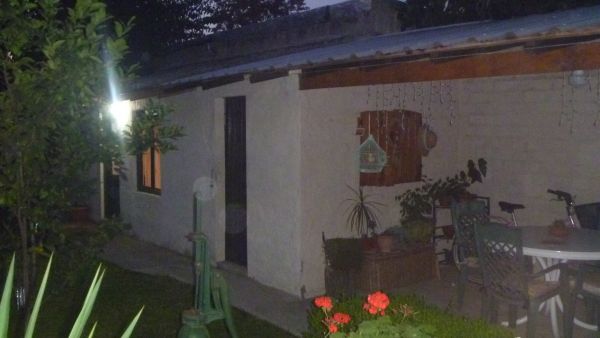 CHALET de Material. Compuesta por: Living de 6.50 x 4.00, con pisos cerámicos. Hogar, cielorrasos en madera a la vista. Comedor  diario con ventilador de techo; Cocina con mesada, alacena y bajo mesada, pisos cerámicos. Baño de 2 .00 x 2.00.  Dormitorio de 3.50 x 4.00, con pisos cerámicos y AA. Pasillo central. Pasillo lateral para ingreso al fondo del inmueble. Fondo libre Parquizado. Quincho , parrilla, cuarto de enseres de 2.50.  x 2.50. DEPTO: De 2.50 x 8.00, con cocina comedor. Dormitorio y Baño.