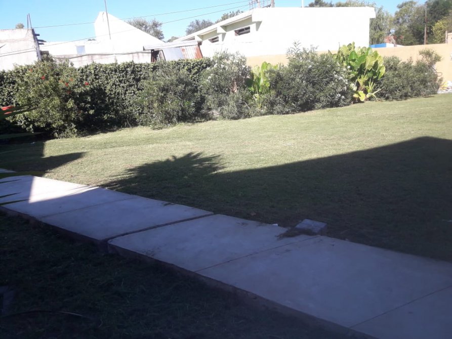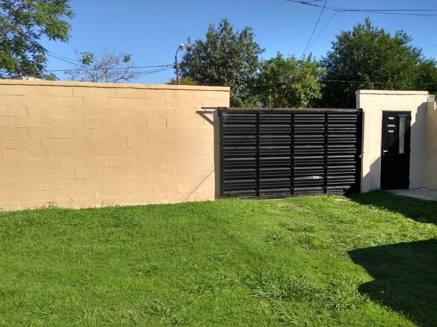 Terreno libre al frente con lugar para un auto por departamento (es compartido con los demás departamentos que son 4 en total), portón corredizo, y todo el terreno se encuentra con un muro perimetral y parquizado.