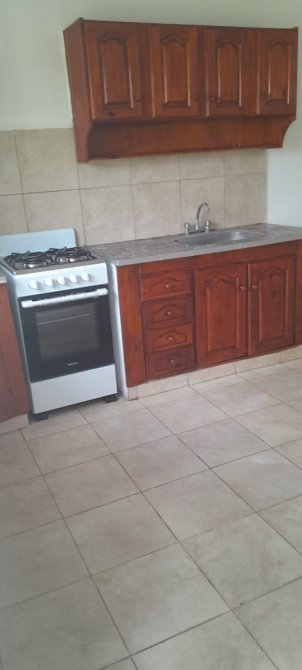 Un Ambiente libre (MONOAMBIENTE) con Termotanque eléctrico, con artefacto de cocina para Gas envasado, Amoblamiento de cocina con bajo y sobre mesada, Baño completo. Patio cubierto con pileta de lavar.