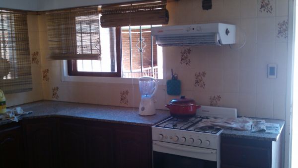 cocina toda amueblada con bajo mesada de algarrobo, mesada de mármol, muy iluminada y amplia 4 x 5;