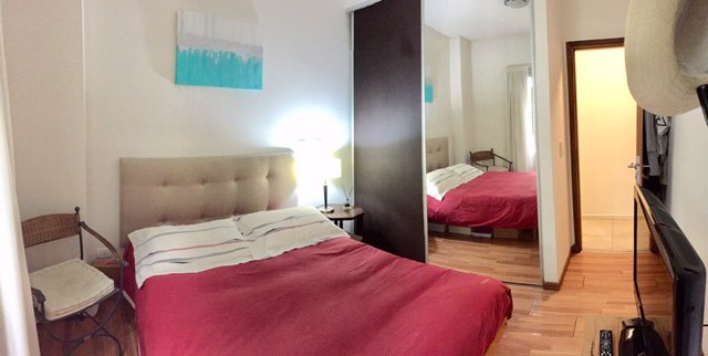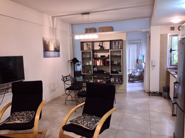 La propiedad consta de amplio living-comedor con un mueble divisorio, lo que permite separar el ambiente a un segundo dormitorio con placard, ademas cuenta con cocina totalmente equipada con muebles bajo y sobre mesada, dormitorio principal con vestidor y baño con antebaño completo. La unidad cuenta con calefaccion por radiadores con caldera individual y puerta de ingreso blindada.