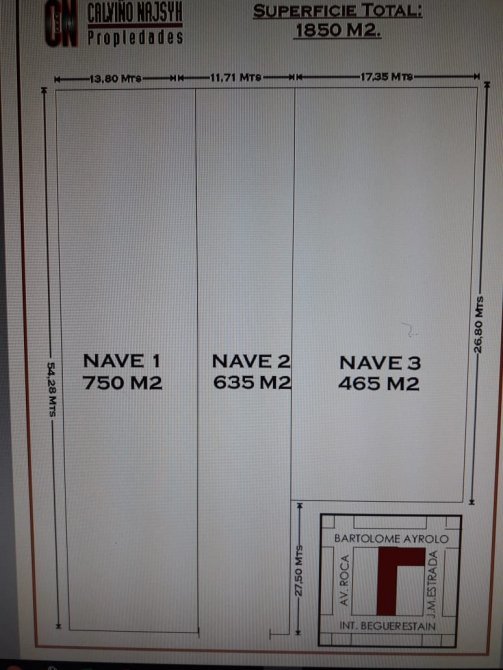 Sector A:  con salida a dos calles (Beguiristain al frente y Pasaje Bartolomé Ayrolo en contrafrente) de 13,80 metros de ancho por 54 metros de fondo es decir 750 m2.