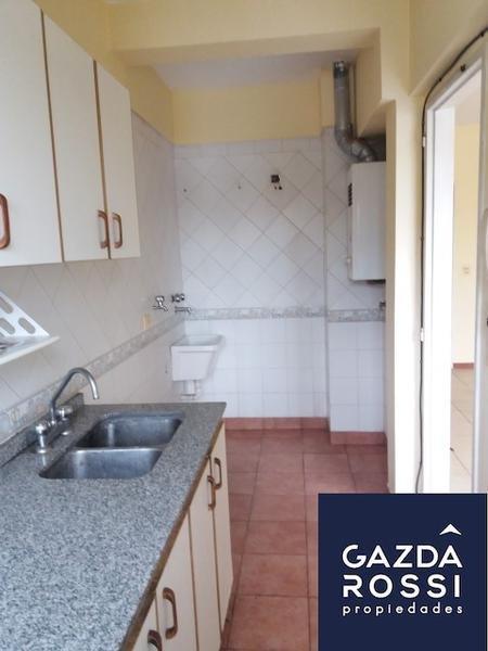 Cocina independiente muy cómoda con muebles bajo y sobre mesada impecables, pileta de lavado y espacio cómodo para lavarropas.