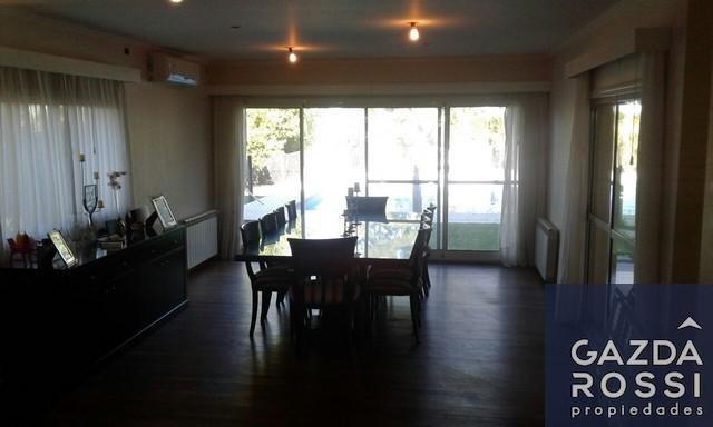 Planta Baja: -Hall de recepción -Comedor principal c /living integrado con excelente piso de madera y gran ventanal al parque y piscina.