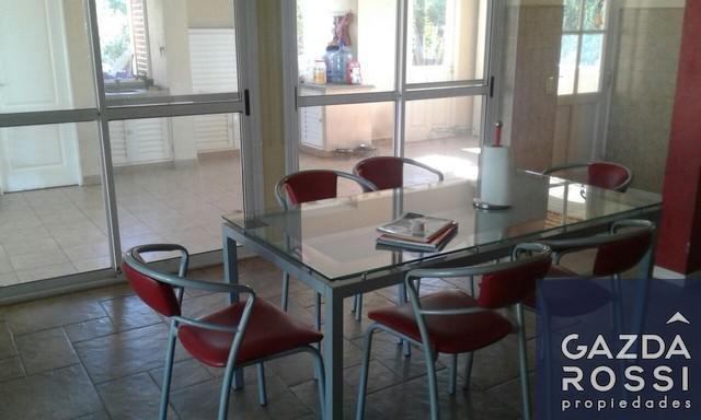 Exterior: -Parque -Galería c/parrilla -Cuarto de enseres -Piscina de 12 x 5 mts aprox. Revestida en venecitas. Riego por aspersion.