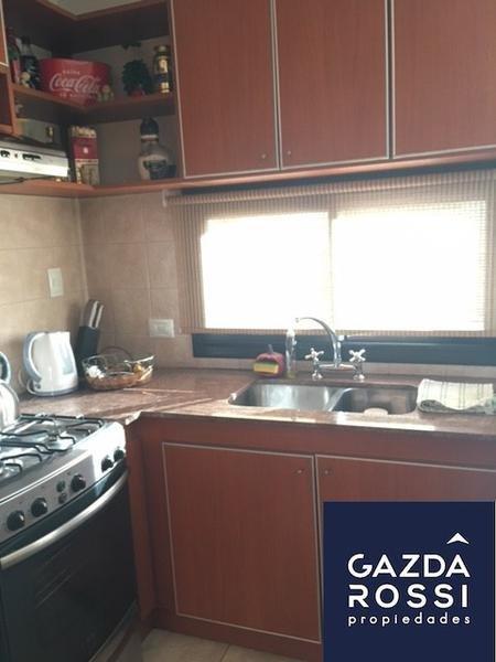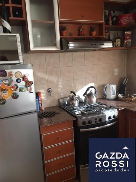 - Cocina semi incorporada al living comedor con una barra de madera de roble, con muebles sobe y bajo mesada.