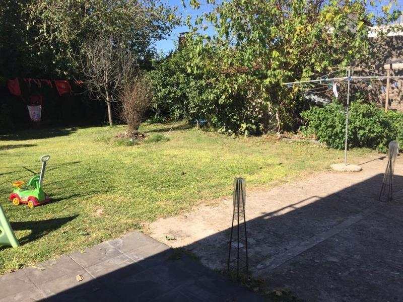 Casa tipo duplex en amplio lote. Planta baja living comedor, cocina con muebles de madera, entrada varios autos, amplio jardin; Planta alta dos dormitorios, baño completo.