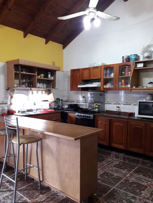 Amplio chalet que conta de: en Planta Baja: entrada de auto, garaje cubierto grande, amplio livin comedor, con cocina completamente amoblada a medida en L, dos dormitorios con placard, ante baño, y baño completo, hermoso parque libre con parrilla. En la planta alta: dos dormitorios.