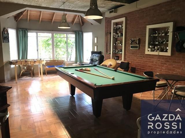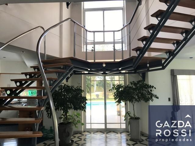 Consta de: PB: HALL DE ACCESO - con escalera central en triple altura) - AMPLÍSIMO LIVING y COMEDOR MAS SECTOR DE ESTAR (en doble altura, con hermosas vistas al frente y contrafrente - hogar a leños) - COCINA / COMEDOR DIARIO (muebles Johnson - está integrada pero perfectamente se puede dividir del hall y living comedor) - TOILETTE - QUINCHO - SALA DE JUEGOS - LAVADERO - DEP. de SERVICIO CON BAÑO - AMPLIA GALERIA (semicubierta, con parrilla) - HERMOSA PISCINA (de 15x5 aprox) - INMEJORABLE PARQUE ARBOLADO (con vistas abiertas para todos lados)