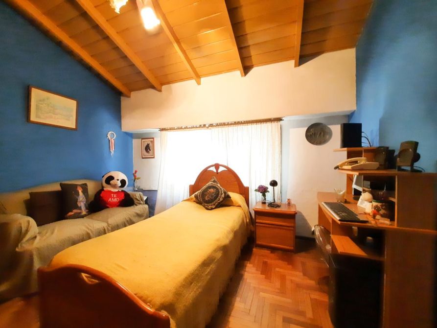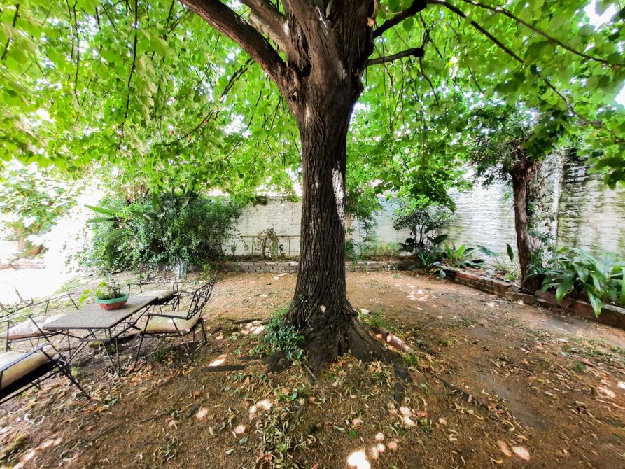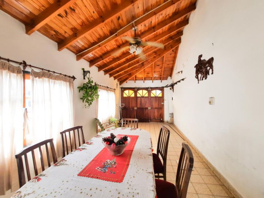 Posee patio al frente, doble garage, de los cuales uno es pasante que se puede utilizar como quincho y fondo libre con jardín, patio y parrilla.