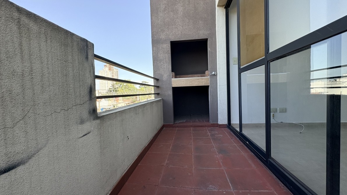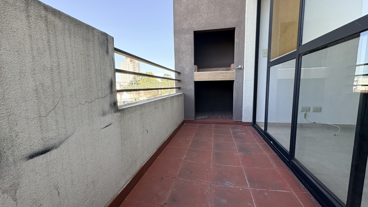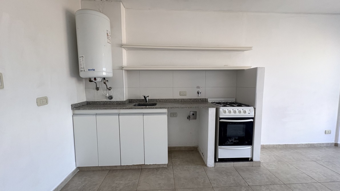 Consta de cocina con muebles bajo mesada y estante sobre mesada, artefacto, bacha de acero inoxidable con griferia monocomando, amplio ambiente general con gran ventanal de acceso al balcón el cual cuenta con parrilla y baño completo con ducha.