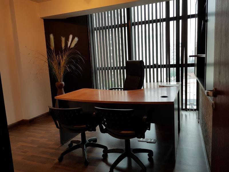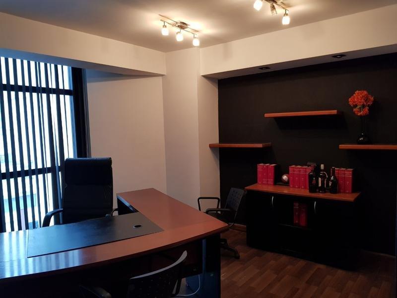CUENTA CON SALA DE RECEPCION, AMPLIA SALA DE REUNIONES, 3 DESPACHOS U OFICINAS, 2 TOILLETES Y KITCHINET. DE ESTILO MODERNO EN IMPECABLE ESTADO, TOTALMENTE EQUIPADA, SE ENTRAGA CON EL MOBILIARIO QUE SE VE EN LAS FOTOS (SILLONES, ESCRITORIOS, ETC).