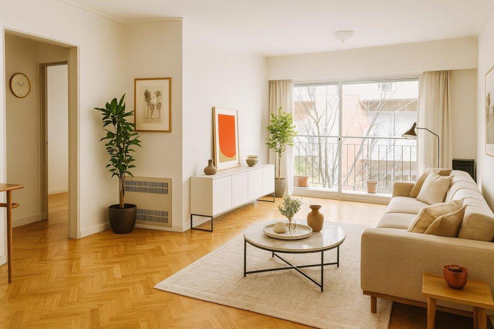 La decoración de la primer imagen esta generada con IA para mostrar el potencial del departamento ya que se encuentra vacio.