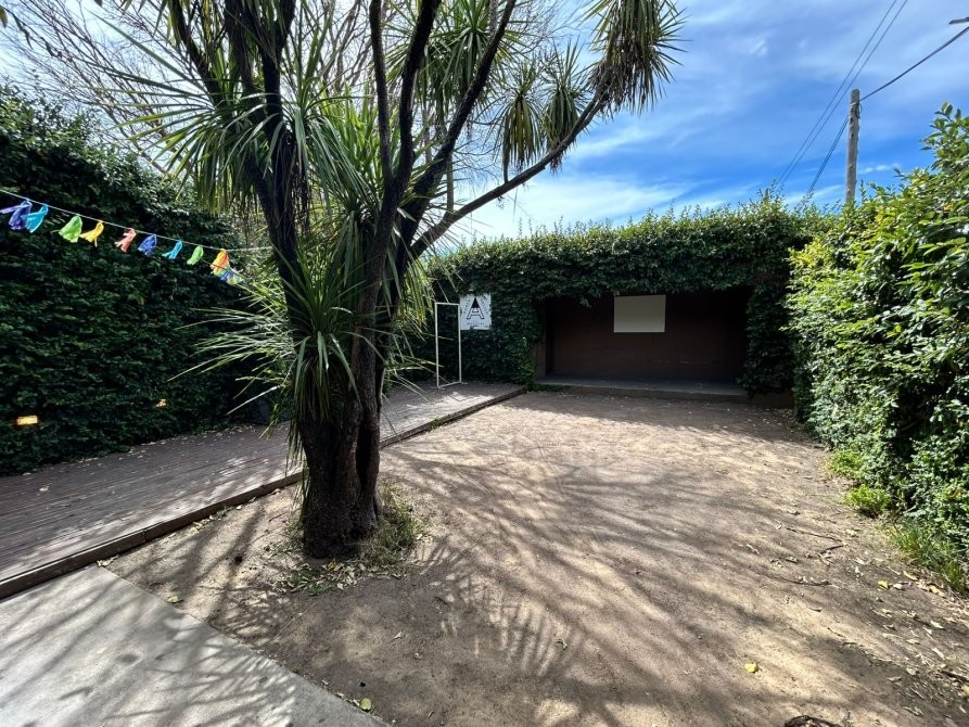 espacio libre tipo patio con jardín, hogar y galería con depósito y baño auxiliar
