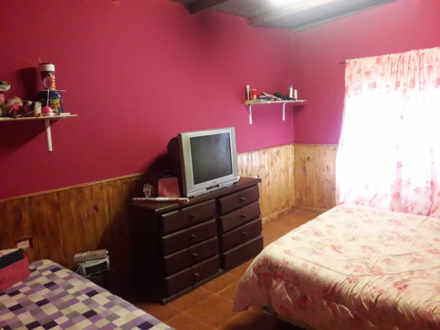 Las características y comodidades del inmueble son las siguientes:          Cocina comedor por (450 x 750) Dos dormitorios (4x5 y 4x4) , un Baño de (3x3) completamente instalado con revestimiento de cerámica , pieza de (3x4) y un Living de (4x4) ., Posee techo de loza , piso cerámicos, Bomba , Pozo Ciego entrada de autos y Jardín., Ubicado a dos cuadras de pavimento y diez cuadras de la ruta 205.