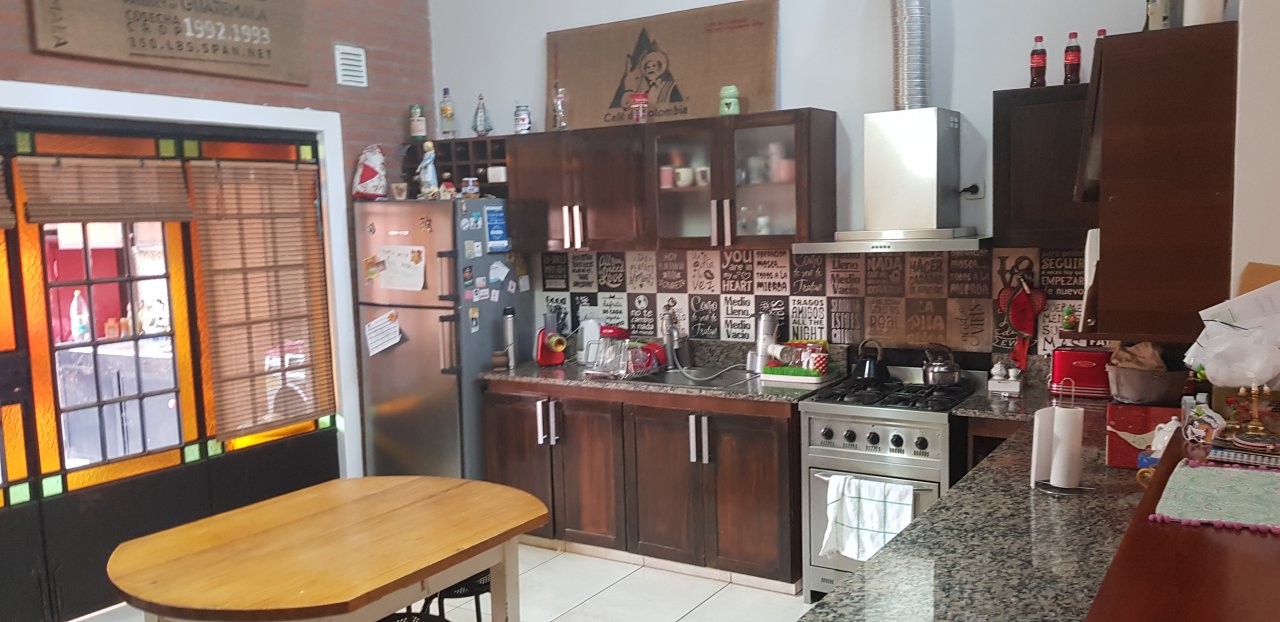 COCINA COMEDOR amplia de 4,00 x 3,50 mts (aprox) con amoblamientos de cocina a medida, mesada, pasaplatos, cocina y campana en acero inox., ventanal de hierro artistico con vista al patio. -