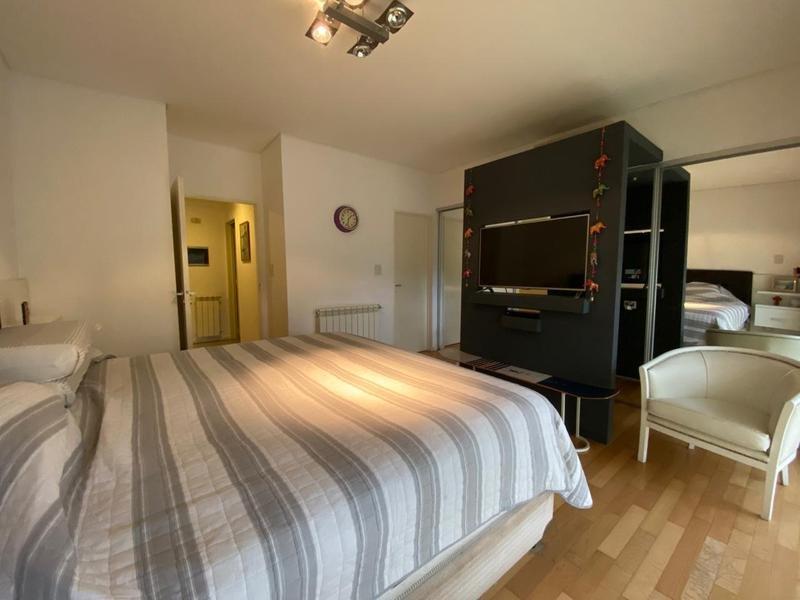 -Dormitorio en suite con placard de puertas espejadas.