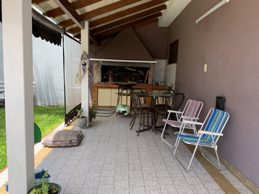 - Galería cubierta integrada a la casa con parrilla.