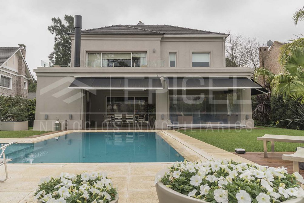 Propiedad premium de estilo clásico desarrollada en 398 metros totales sobre un lote de 833 m2. Destacada por su excelente calidad constructiva y sus detalles de categoría, esta propiedad se encuentra en una calle central del barrio a solo 2 cuadras del sector de amenities del mismo. Cuenta con ambientes amplios y equipados especialmente para la vida cotidiana de una familia.