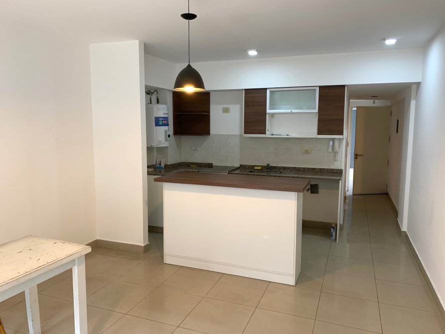 Muy lindo departamento, en zona de Banfield oeste. Se entrega muy bien equipado. Consta de cocina-comedor con muebles completos, barra desayunadora en madera, artefacto de cocina nueva, espacio para lavarropas, pisos de porcellanato, amplio ventanal al frente y rejas. Baño completo de muy buena calidad, detalles en venecita, bañera y todos sus accesorios correspondientes. Dormitorio muy lindo con pisos flotante, frente e interior de placard espejado. Amplio jardin trasero con parrilla. Cochera semicubierta. La unidad cuenta con split frio – calor, artefactos de iluminacion y cortinas. El complejo posee terraza con solarium y parrilla.