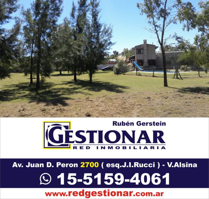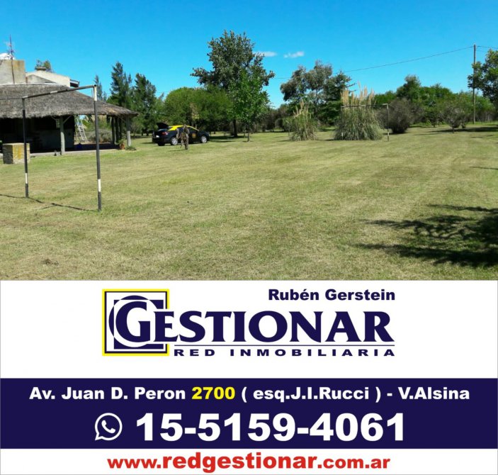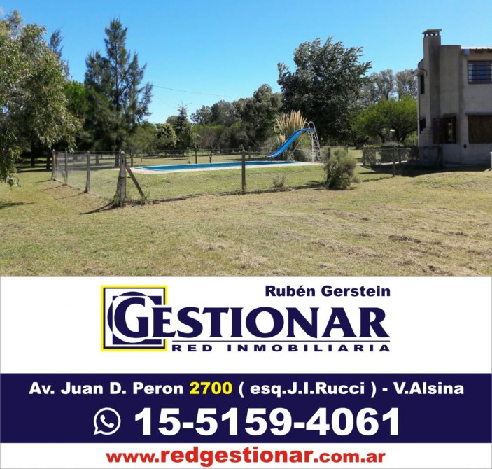 Casa Quinta sobre 8200 m2 de parque (son dos fracciones de 50 x 82 metros cada una); con pileta de natación de 4 x 8 metros con filtro; galpón de 8 x 10 metros y 4 metros de altura. Hay construida una vivienda de estilo rústica, compuesta de living comedor, cocina, baño y escalera a planta alta, donde se encuentra 1 dormitorio; cuenta con amplia galería en "L" alrededor de la vivienda; horno de barro, parrilla y bomba centrífuga. Con servicios de energía eléctrica, sobre calles consolidadas.