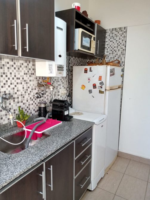 Living-Comedor c/piso granito, ventanal, salida a pequeño balcón lateral - Cocina reciclada a nuevo c/moderno revestimiento de pared, equipamiento de muebles bajo y sobre mesada, conexión p/lavarropas, calefón; salida al Balconcito lateral, con pileta de lavar - Distribuidor c/placard empotrado - Dormitorio con ventanal, placard c/interiores, piso de parquet - Baño completo con bañera, piso granito, revestimiento c/azulejos, ventana.