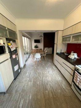 Cuenta con amplio living de aprox 8m x 4m, con hogar a gas, cocina comedor, hecha a nuevo, con amoblamiento sobre y bajo mesada, tres dormitorios en planta baja, dos baños completos hechos totalmente a nuevo, garage para dos autos, dos patios, uno de ellos con parrilla.