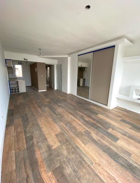 Se trata de un ambiente integrado, con pisos de Porcelanto y frente de placard espejado.