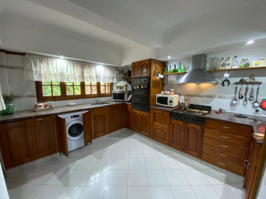 Planta baja: Living-comedor, cocina, una habitacion, baño completo, garage pasante, quincho con parrilla, amplio fondo con pileta.