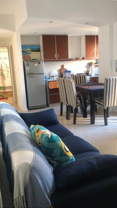Living comedor con cocina integrada con muebles de bajo mesada y alacena,