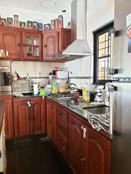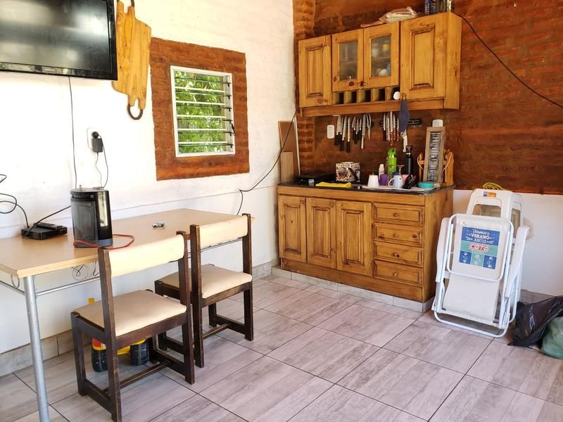 Cochera con portón automatizado, patio con parrilla, lavadero y muy linda terraza con quincho con amoblamientos de cocina y parrilla exterior.