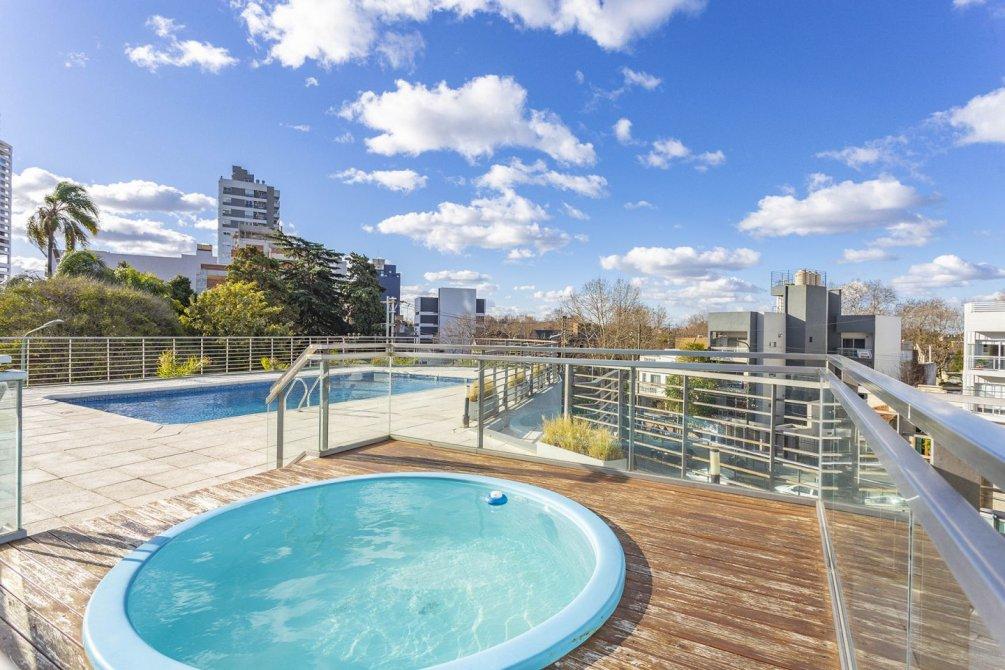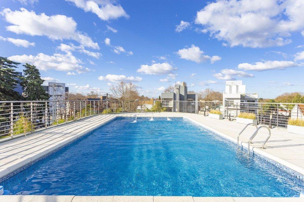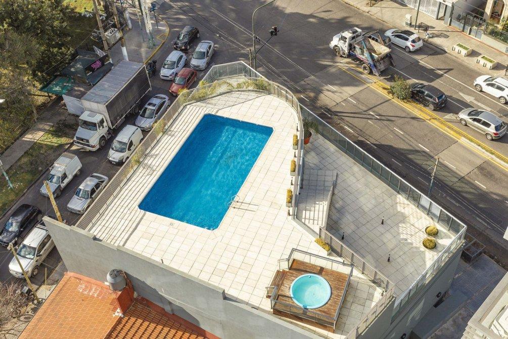 El edificio ofrece excelentes amenities, entre ellos dos piscinas, solárium, vestuarios, y SUM cubierto y semicubierto, brindando confort y funcionalidad en un entorno moderno.
